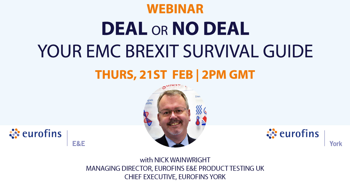 Join Nick Wainwright, Managing Director of Eurofins E&E Product Testing UK, to talk about the current state of CE Marking and how a deal or no deal BREXIT will affect testing, certification and product marking.